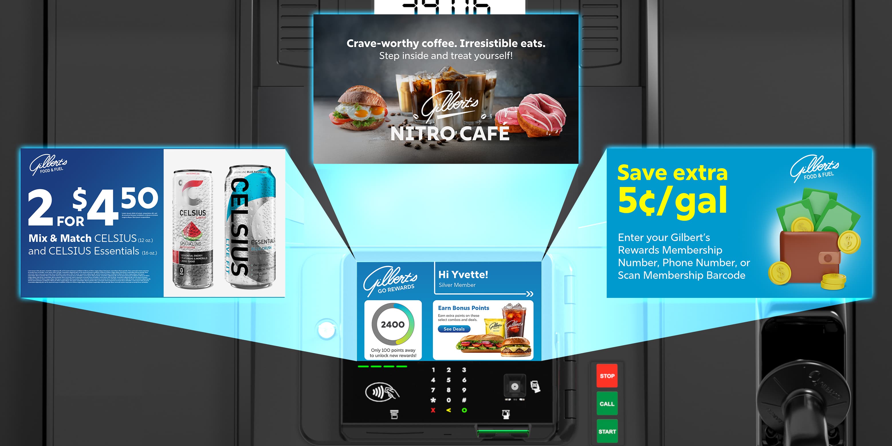 - Drive In-Store Sales – Capture the attention of customers during fuel-ups, promoting timely and relevant store offers, and enticing them to make additional purchases inside the store.